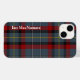 Stylish iPhone case mate phone case done in the traditional black, grey and red Scottish tartan plaid of the MacNamara clan. Custom text running vertical, on the left side, is ready to personalize. Stylish and great way to protect your smart phone, and makes a great gift idea.