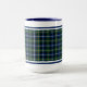 Coffee mug with the tartan for Clan MacNeil and its septs, including MacGuckin and Niall. Black, dark royal blue and forest green Scottish plaid pattern from 1831, with bright yellow gold and white accents.