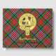 Clan MacPherson crest badge surrounded by a strap and buckle over tartan background. Custom front, back and spine text.