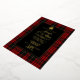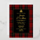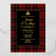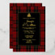 Classic red, black and yellow Scottish clan MacQueen plaid and foil wedding invitation, with a decorative black text area. A foil Celtic knot heart decorates the top of the text area. Personalize the text for your highland wedding.