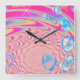 MACRAME'- Colourful Abstract Image of Fractal Art Square Wall Clock