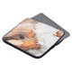 This laptop sleeve looks exactly as it does in picture. I actually thought is was too small until I put my laptop in it. It's a bit snug, but it fits. Figure it will stretch a bit, hopefully seams hold. Them seem good for now. I didn't have any personalization done, looks great as is.