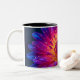 This Stellar Burst mug explodes with a blazing core through hot pink into electric blue tips dusted with cosmic glitter. A fusion of vintage botanical inspiration and AI imagination