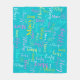 Typographic short name text aqua, pink, yellow and white on a dark aqua background custom blanket design. Background colour can be changed if required. Fun personalized graphic text personalized blanket. Ideal for the car, camping for winter nights or trips out. Personalize with your own short name, currently reads Macy for help with personalization and other name lengths please contact me. © Art and design by Sarah Trett for www.mylittleeden.com