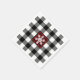 These seasonal black and white plaid pattern paper napkins have a red and black Buffalo plaid centre square with a large white snowflake on it.