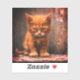 This sticker has a mad kitten pictured on it.