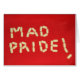 The words "MAD PRIDE!" spelled out using anti-depressant pills on a red background.