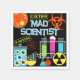 Mad Scientist Birthday paper napkins, a great design that features test tubes, a jar of eyeballs, beakers, and more with blue text edged with white that reads Mad Scientist! We have the matching mad scientist birthday invitations, paper plates, T-shirts, and chocolate dipped Oreos!