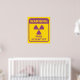 Warning - Mad Scientist - humourous warning poster in yellow and purple radiation warning sign colours.