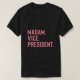 This design features a powerful woman with the title "Madam Vice President." Celebrate female empowerment and leadership with this statement piece.