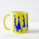 Madame bleue et jaune Mug est spéciale parce que l'image est un détail reproduit d'une toile originale de couleur pour aquarelle de popasauruspopadogART. L'image capture le moment un dimanche après-midi quand un groupe de dames a traversé une route à la lumière du soleil lumineuse d'été.