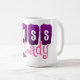 Qui est le patron ? Conception mignonne des textes dans le pourpre avec les contours blancs qui indique Madame de patron. Une illustration d'une chaussure de talon stylet ajoute un point d'exclamation de mode !