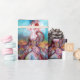 Elegant ,colourful ,classy and unique design in bright ,red ,pink ,blue white colours .Beautiful sophisticated blonde woman character,sparkling fabrics of a baroque costume with a red rose. Original watercolor and acrylic painting with gold foil and iridescent colours on canvas