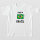 Nice shirt with the text: Made in Brazil as an image is the Brazilian flag and it's behind the map of the country's shape. Colors: green, yellow and blue.