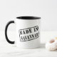 Made In Savannah! Are you from Savannah, Georgia? Do you have a friend or family member who loves Savannah, Georgia? If so, this "Made In..." mug is exactly the gift that you're looking for! The design features a weathered "Made in Savannah" in black stencil-like lettering surrounded by a black rounded rectangle.