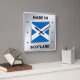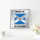 A design which features a faux silver square, which has been designed to look like the inner has been chamfered. In the center of the square, is the Scottish flag. Around the square is the text "Made In Scotland" along with 6 decorative stars.