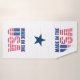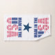 It was advertised as NAVY blue and the color sent was greenish blue. I am disappointed in this product. Quality and printing are great as are all my other orders. As you can see in picture the tea towel on right is perfect, hand towel not so much! Print was awesome and just as ordered