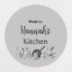 Introducing the "Made in [Your Name Here] Kitchen" cake pan lid, adorned with a charming black and white illustration of pots and pans, adding a touch of personal flair to your culinary creations. Elevate your baking experience with this unique and stylish lid, proudly crafted in your kitchen. This makes the perfect gift for the cook you love.