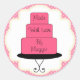 These stickers feature an image of a three tiered cake, with a customizable place to put your own name!