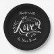 Made with love beautiful hand lettered black Paper Plates. Elegant design with brush script typography. Personalize with custom text. GReat for wedding party, Birthday and more.