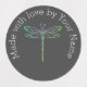 "Made with Love by [Insert Your Name Here]" customizable text in modern white font on grey background with colourful line art style dragonfly graphic. Perfect for your homemade gifts for family and friends, farmers market items, or small business production batches for things like handmade soaps/lotions etc.