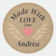Made with Love Custom Name Classic Round Sticker