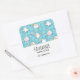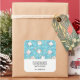 Handmade with love product stickers with a cute cat pattern, set on a blue background and decorated with rainbows and paw prints and more.