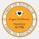 A simple circle and heart design with whimsical and playful typography makes a lovely label for your homemade recipes. In pumpkin orange, white and black. Perfect for jams, jellies and breads.