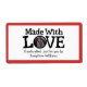This adorable sticker label features Made with Love on the left side, with the O having two shadow figures forming a heart shape by joining hands. The heart has been coloured red for emphasis. Customize with your personal or business information and use it as a canning label, handmade craft tag, or enter your contact info and use as a return address label!