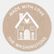 A kraft paper and white Scandinavian Christmas house sticker with the words Made with love. Personalize it with your family name. Fun for your homemade or handmade Christmas neighbour treats and gifts, or for your craft business. Designed for you by Blackberry Boulevard.