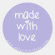 NewParkLane - Lavender stickers with quote 'Made with love' in a cute hand lettered white typography. The letter i has a heart. Add your own name or other text in the easy-to-use text template, for a personalized design and choose the background colour of your liking.