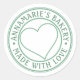 Personalize with your name or business name. Editable text reads "Made with Love." Perfect for homemade baked goods or your bakery's packaging. Heart with double round border.