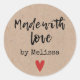 A personalized round "made with love" sticker with a hand drawn font on a kraft paper background. Make it yours by adding your own name. A pretty finishing touch for all of your handmade or home made gifts. Designed for you by Blackberry Boulevard.