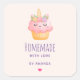 Homemade with love stickers with a watercolor drawing of a cupcake with pink icing, a unicorn horn and colourful roses.