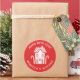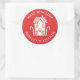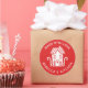 A personalized "made with love" sticker featuring a cute white gingerbread house with a heart and the words, made with love on a red coloured background. Personalize it by adding your own name. A pretty finishing touch for all of your homemade gifts. Designed for you by Blackberry Boulevard.