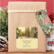 Made with love personalized stickers with a beautiful nature photograph. An isolated winter path with tall snow covered pine trees.