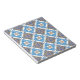 A blue, green and yellow arabesque pattern like seen on mediterranean tiles