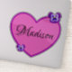 Pictured in a pink and purple heart is a Madison name logo with two Pansies
