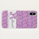 Pretty hand drawn letter M monogram name and meaning girls iphone case. Ideal for a personalized gift for a girl who has a name that starts with the letter M. This example reads Madison A strong fighter. Sophisticated and elegant or you can customize the text with your own if required. Makes a unique Birthday or Christmas gift. If you need help with your own personalized name please contact me. © Letter M typographical hearts and flowers drawing and pattern in shades of pink, purple and white is uniquely created by Sarah Trett. www.sarahtrett.com for www.mylittleeden.com
