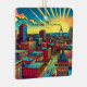Christmas ornament. Retro ai art with colourful vintage vibes Madison, Wisconsin Capitol and lake at sunset souvenir keepsake.