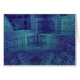 This 3D rendered fractal features a complex and intricate pattern of cubes and abstract geometric designs in shades of blue.