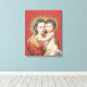 This exquisite 16 x 20 stretched canvas of Mary holding the child Jesus would look spectacular in your home! It will add a touch of spirituality at the same time as it provides a piece of beautiful art.