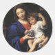 The Madonna wears blue and red robes and has the Christ child on her lap. The Virgin hold’s grapes in her hand. A gorgeous sheet of Madonna and child stickers.