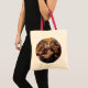 These bags were super cute (I purchased 3). The material is more of a canvas look & feel. The colour of the bag is slightly off white, but the letters look exactly as pictured. I took 3 photos in different lighting. Would recommend! I liked how there was an option to choose the font and colour of the name. The words are legible and the colours are exactly as pictured.