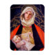 Vintage 1907 artwork depicting Madonna with the Christ Child on her lap. Painting is richly coloured in royal blues, oranges and gold. Art by pre-raphaelite painter Marianne P Stokes.