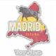 Madrid region in Spain with map and bull or taurus design, spanish vintage flag, souvenir for city holiday. Madrid with retro bull design and map as Spain and Europe souvenir! Lifestyle for Madrid backpackers and European city trip.
