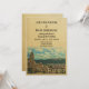 Vintage Madrid Wedding Invitations featuring a city view with mountains in the background. This cool mid-century retro design is the perfect way to gather guests to your Madrid Spain destination wedding.