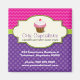 Cet aimant de cupcake clair et capricieux attire certainement l'attention. Le cadre couleur crème contient le cupcake au chocolat recouvert de cerise, recouvert de glaçage rose et blanc, ainsi qu'un nom d'entreprise et une description. Le tout est posé contre un chevron rose coloré et un arrière - plan de pois pourpre. Les coordonnées de l'entreprise sont indiquées ci-dessous. Parfait élément promotionnel fantaisiste pour un magasin de cupcakes, une boulangerie ou toute personne qui traite de sucreries. Disponible en couleurs alternatives avec des produits correspondants.