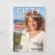 Magazine style 50th birthday party invitation, with the title Fifty and Fabulous! Add your own photo as the cover image, and edit the information in the space provided. Click "customize" to change font or text colours, or to adjust text placement. Contact us at funt-shirts@hotmail.com with any custom requests.