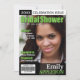 Bridal Shower invitations that look like the cover of a magazine. Personalize with the Bride-to-be's photo, fiance, proposal, and party details. For best results, use a high resolution photo displaying the whole to mid of the upper half of the bride-to-be. Black & white or colour photographs may be used.